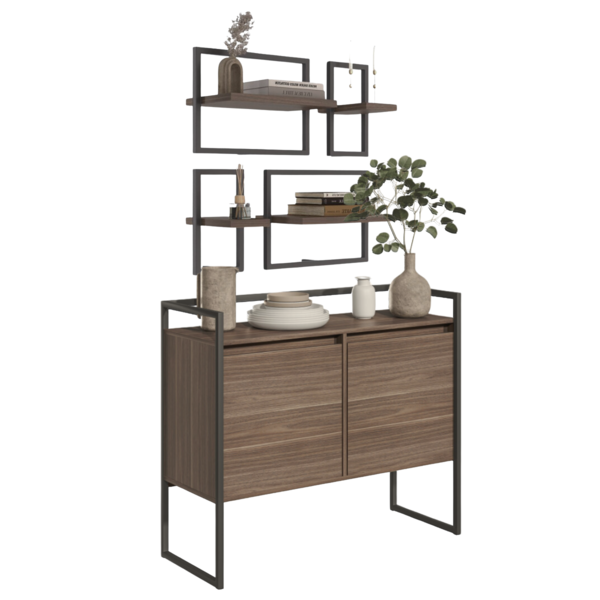Esse conjunto de buffet e nicho é perfeito para a sua sala de jantar ou de estar, com seu charme industrial para a renovação do seu ambiente elegante e moderno. O buffet é feito em mdp com acabamento em bordas em abs. Estrutura em aço com pintura epóxi suporta até 25kg o nic...