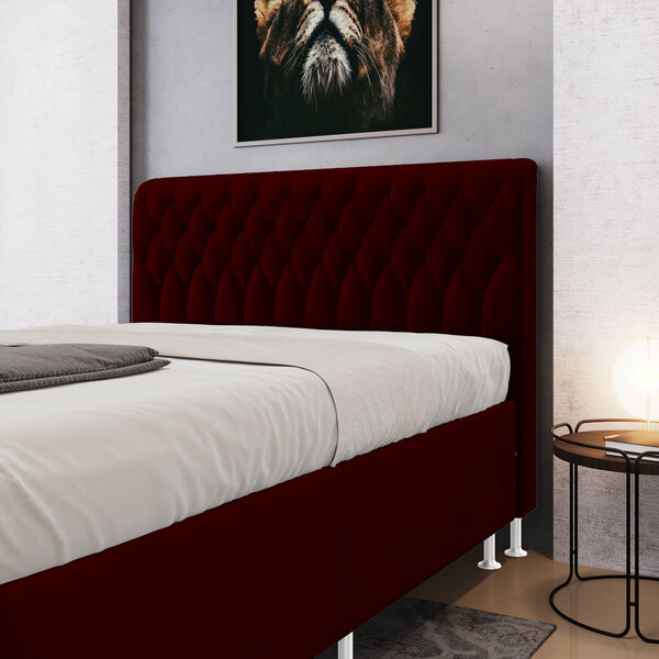 características do produto: madeira de eucalipto proveniente de reflorestamento fixação com grampos galvanizados espuma poliuretano d20 revestimento: sued cor: bordô tamanho: casal padrão para cama de 138 cm possui pés: sim tipo de pés: 2 pés pvc de 12 cm possui botões em capitonê embalagem: plástico bolha, papelão ondulado, malha, plástico fixação diretamente no box através de frames garantia de 3 meses contra defeitos de fábrica.
