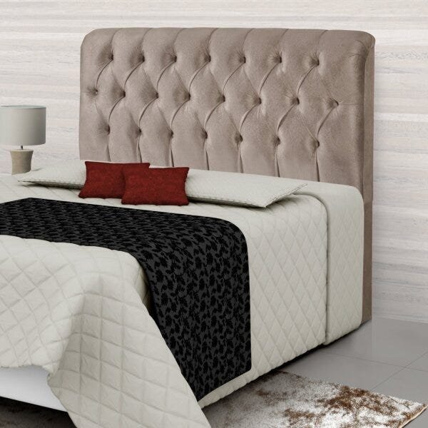 Cabeceira casal estofada 143cm grécia palha. Cabeceira para cama box casal grécia carmolar. 100% revestida com suede aveludado. Enchimento com espuma d-12 em madeira maciça. Design moderno e arrojado, o que com certeza deixará seu quarto ainda mais aconchegante. Peso (kg): 1...