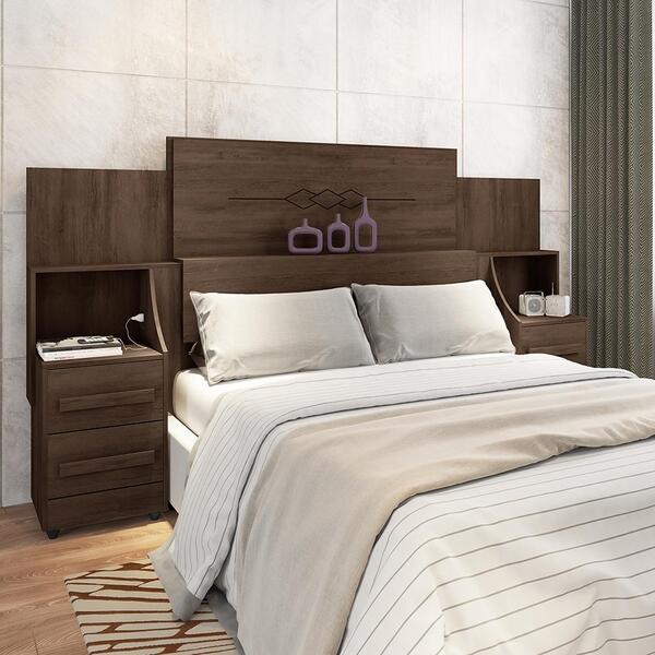 Cabeceira casal extensível amandanoce acabeceira casal extensível amandaé adaptável para cama box de 140 cm, 160 cm, 190 cm e 200 cm. Puxadores em mdf, mesas de cabeceira com corrediças telescópicas e duas tomadas inclusas. É perfeita para adicionar conforto e elegância ao se...