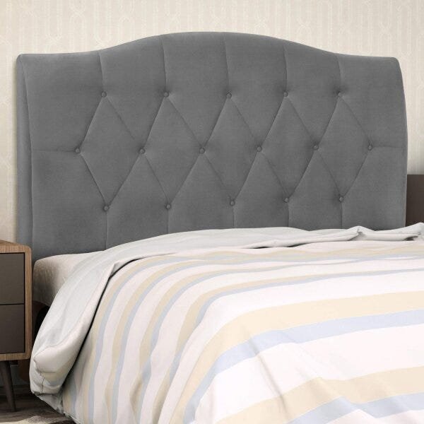 Cabeceira estofada king colony cinza. O quarto ficará mais bonito e moderno, com a cabeceira king colony cinza. Desenvolvida com matérias primas de qualidade. Possui design moderno em losangos que vai valorizar a decoração do seu quarto. Estrutura de madeira tratada, espuma poliuretano e revestida em tecido suede com botões encapados do mesmo material. Proporcionando beleza e resistência ao produto. Sistema de fixação com frame de metal parafusado na cabeceira e encaixado nos pés do box. Peso (kg): 16 garantia: 03 meses altura (cm): 135 acabamento: poliéster extensível: não largura (cm): 195 possui pés: não fixação box: sim profundidade (cm): 15 tamanho da cama: king escala de brilho: fosco material dos pés: pvc serviço montagem: 114259443 fixação na parede: não cabeceira estofada: sim material principal: madeira maciça densidade da espuma: d-18 possui mesa de cabeceira: não revestimento da cabeceira: suede largura do colchão indicado: 195cm fabricante: d monegatto marca: d monegatto cor: cinza cor do produto: cinza itens inclusos: 1 cabeceira e manual de montagem. Cor predominante: cinza linha ou coleção: colony