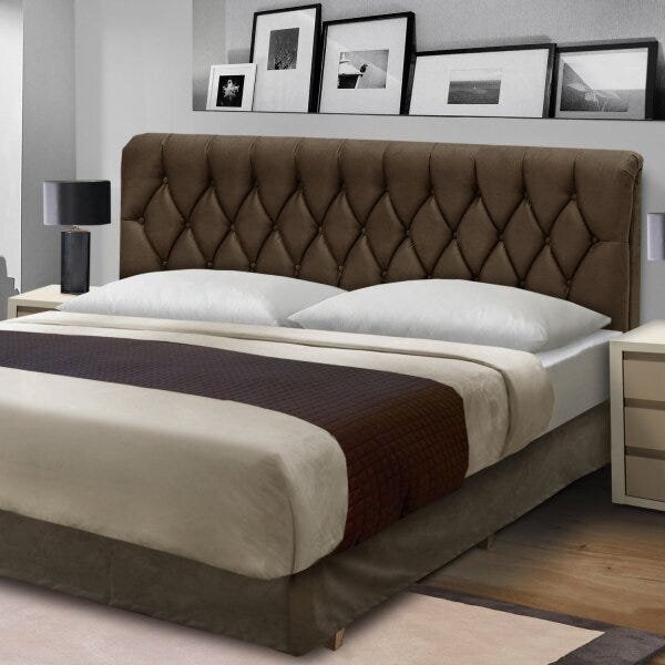 Cabeceira king istambul dobuê chocolate. A dobuê traz a cabeceira istambul para completar seu quarto, um complemento para sua cama box deixando ainda mais bonito seu ambiente. Produzida em madeira branca industrializada. Ela tem detalhe em captonet com revestimento em tecido ...