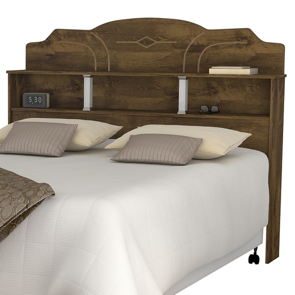a cabeceira star traz conforto e beleza ao seu quarto. ela é ideal para colchão casal queen de 158 cm. dimensões do produto: altura: 122 cm largura: 169 cm profundidade: 20 cm altura do vão: 66 cm informações adicionais: material: mdf/mdp prateleiras: sim, (2). cor: castanho