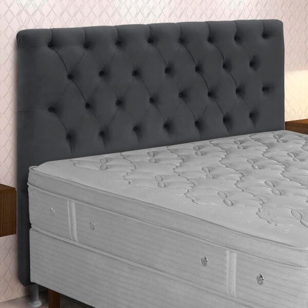 Cabeceira queen estofada embaixatriz cinza escuro. A cabeceira embaixatriz simbal, foi desenvolvida utilizando matérias-primas selecionadas. Possui acabamento com botões ou strass que proporcionam elegância ao produto e deixa seu quarto mais bonito. É produzida em madeira de...