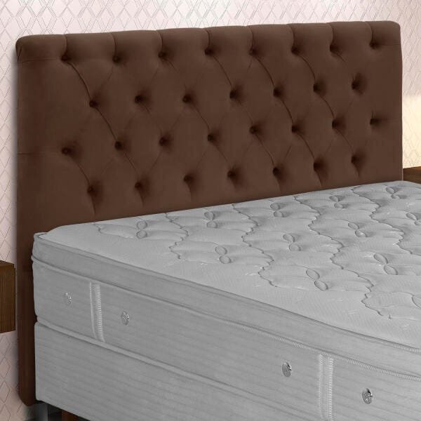 Cabeceira queen estofada embaixatriz marrom chocolate. A cabeceira embaixatriz simbal, foi desenvolvida utilizando matérias-primas selecionadas. Possui acabamento com botões ou strass que proporcionam elegância ao produto e deixa seu quarto mais bonito. É produzida em madeir...