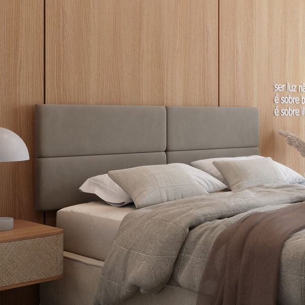 Cabeceira estofada para cama box queen suede bege sophia - cabeceira completa modelo painel instalada diretamente na paredea cabeceira para cama box estofada sophia é a escolha ideal para melhorar o ambiente do seu quarto, proporcionando um toque de aconchego e estilo incomparável. A cabeceira sophia é revestida com tecido suede de excelente qualidade, oferecendo uma sensação agradável e confortável ao toque. Sua estrutura é construída com materiais de alta qualidade, desde a espuma de alta densidade até a estrutura fabricada com mdp/mdf, garantindo firmeza em todos os aspectos. Prática e sofisticada, a cabeceira estofada sophia não apenas adiciona um toque de estilo ao seu quarto, mas também proporciona conforto excepcional para suas noites de sono.  atenção: por ser modelo painel estofado essa cabeceira não possui pés. É instalada diretamente na parede utilizando os suportes que acompanham o produto. Destaques: - cabeceira forrada com tecido suede;- espuma de alta qualidade;- estrutura reforçada;- adequada para cama box queen;- fácil manutenção e limpeza;- instalada direto na parede;- protege sua parede contra manchas e fricção;- acompanha kit de instalação com buchas, parafusos e suporte.- acompanha manual de instalação  dimensões produto instalado (em cm)altura: 55cm / largura: 160cm / profundidade: 5cm itens inclusos:01 cabeceira, kit para instalação e manual de montagem outras informações:imagens meramente ilustrativas. Os objetos que ambientam as fotos não acompanham o produto e nem são comercializados por nós; fique atento, pode haver alguma diferença de tonalidade entre a foto apresentada e o produto real, por conta do tratamento de imagens e a calibração de cores do seu monitor;