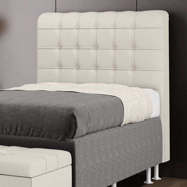 A cabeceira rana possui um design soft e delicado e é perfeita para pessoas com um estilo mais moderno. Possui detalhes em botões e plaquetas laterais decorativas, tudo isso com um ótimo custo benefício. Possui dois pés de 12 cm e 2 frames para a sustentação do box, não sendo necessário furar a sua cama , apenas encaixa-la nos suportes da cabeceira. Adquira já!    dimensões da cabeceira ranalargura: 90 cmaltura: 124 cmprofundidade: 18 cmpeso: 10 kg dimensões do produto embaladolargura: 92 cmaltura: 112 cmprofundidade: 19  cmpeso: 12 kg características do produto:madeira de eucalipto proveniente de reflorestamentofixação com grampos galvanizadosespuma poliuretano d20revestimento: couro aritficialcor: bege tamanho:solteiro para colchão de 88 cmpossui pés: simtipo de pés: 2 pés pvc de 12 cmpossui detalhes em painel capitonadoembalagem: plástico bolha, papelão ondulado, malha, plásticofixação diretamente no box através de framesgarantia de 3 meses contra defeitos de fábrica. diferenciais: - madeira de alta qualidade- design moderno- material resistente- ótimo acabamento- estrutura reforçada sistema de montagem: o produto é enviado montado, sendo necessário apenas a fixação dos frames e pés.manual de montagem: simvolumes: 1 volumemontagem: recomendamos que seja feita por um profissionalrecomendação de limpeza: utilize pano levemente úmido observações importantes- produto para uso residencial em ambiente interno, não devendo ficar exposto diretamente ao sol, calor e umidades excessivas.- pode haver alguma diferença de tonalidade entre a imagem e o produto real, por conta do tratamento de imagens e a calibração de cores do seu monitor.- as imagens são meramente ilustrativas, não acompanham objetos de decoração e eletrônicos.- ao receber a mercadoria, o cliente deve verificar as condições da embalagem, caso haja alguma avaria não assine o comprovante de recebimento.- montagem, desmontagem e outras instalações serão de responsabilidade do cliente. Não nos responsabilizamos, no ato da entrega, por subir escadas/elevadores ou pelo transporte por guincho em apartamentos. Eventuais despesas são de responsabilidade do comprador.- confira as dimensões do produto e certifique-se de que passará normalmente por supostos elevadores, portas, escadas e/ou corredores.- em caso de troca ou devolução, o produto deve obrigatoriamente ser embalado novamente com a embalagem original ou semelhante