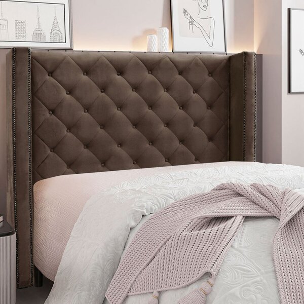 Cabeceira Solteiro 90cm Veludo Vicenza  Marrom