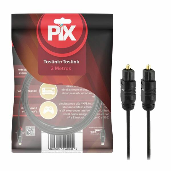Cabo óptico toslink 3 metros profissional pix 018-9003    mais um produto com a qualidade pix, acessórios de áudio e vídeo que proporcionam a imagem mais nítida e o som mais perfeito. • ideal para sistemas de home theater profissionais, os cabos de fibras óptica toslink oferecem total fidelidade de áudio. • os cabos toslink pix da chipsce utilizam fibra óptica para oferecer o som digital mais nítido e da alta qualidade, sem distorção e com os menores níveis de ruído. • cabo de fibra ótica para conexão digital de áudio para transmissão de em alta largura de banda sem perda de qualidade. • os cabos toslink pix® são compatíveis com equipamentos profissionais de áudio, home theaters, receptores av e consoles de videogame como xbox (360 e one) e playstation (3 e 4).