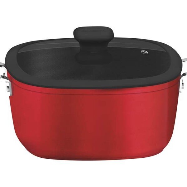 Caçarola retangular tramontina refinatta em alumínio com revestimento interno antiaderente starflon t3 com tampa e alças vermelha 24 cm 4,8 l. corpo de alumínio com espessura de 3,0 mm que proporciona cozimento rápido e uniforme. Revestimento interno de antiaderente starflon t3. O único com a tecnologia t: maior poder de antiaderência; maior resistência à abrasão; maior durabilidade; mais fácil para limpar e livre de pfoa, garantindo uma resistência à abrasão mais de 15. 000 ciclos baseado na norma abnt nbr 15321:2013. Revestimento externo de silicone. Tampa de vidro temperado com borda de aço inox e saída de vapor. Alças de aço inox com proteção de silicone e pegador de silicone que proporciona redução da propagação de calor, aumentando a segurança e melhorando a empunhadura. Pode ir à máquina de lavar louças facilitando seu dia a dia..