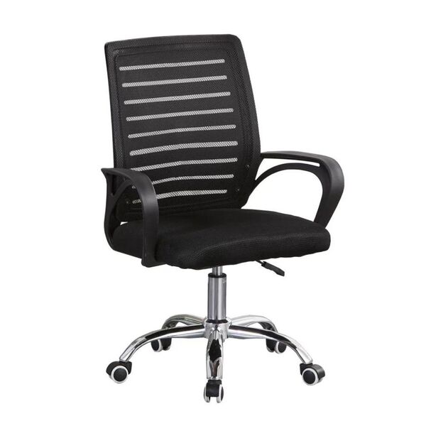 A nossa cadeira athenas - preta é uma opção simples e confortável para o seu dia a dia em seu ambiente office. conta com seu encosto reclinável é em tela e seu assento em espuma acompanhados por faixas de polipropileno sua base é giratória em nylon e conta também com ajuste de altura. oque vai lhe proporcionar mais conforto e durabilidade. garanta sua cadeira office em nosso site e deixe seu ambiente muito mais harmônico e moderno!   especificações:  altura: 88cm á 97cm altura do chão ao assento: 51cm  altura do chão ao braço: 67cm altura do assento ao braço: 16cm altura do encosto: 56cm largura do encosto: 42cm largura: 49cm profundidade: 43cm peso: 9kg necessita montagem: sim garantia: 90 dias contra defeitos de fabricação.   limpeza e manutenção: limpar com pano macio umedecido em solução de água e sabão neutro em manchas leves e secar em seguida; não utilizar produtos químicos; não exceder o limite de peso; evitar área externa como varanda onde ocorra exposição ao sol e à chuva. Para limpeza de rotina usar aspirador de pó ou flanela seca.