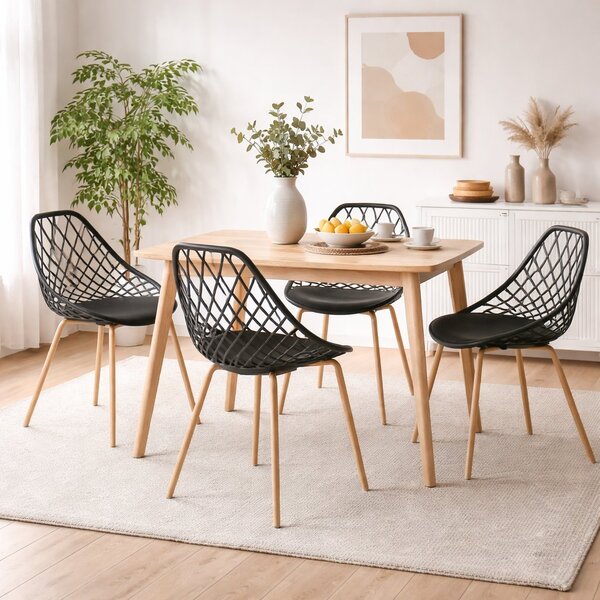 Cadeira cloe base aço preto. A cadeira cloe é especial para quem busca praticidade com toques de design. Seu assento com detalhes vazados em polipropileno confere um ar moderno para a decoração e a base em aço tem adesivo que imita madeira, aplicado por transferência de calor...