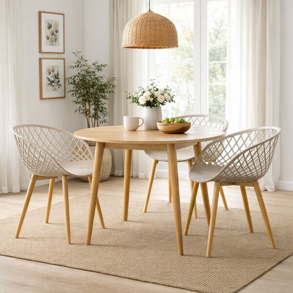Cadeira com braços polipropileno clarice nude. Uma cadeira versátil, perfeita para vários ambientes : desde a mesa de jantar, ao aconchego do quarto. Cadeira com assento em pp, com braços e encosto. Possui base fixa em metal adesivado com textura em madeira. Peso (kg): 5.1 d...