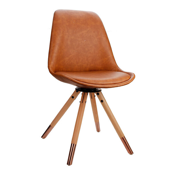 Cadeira luana giratória - rivatti cadeira para uso interno, com encosto não reclinável, estofada, assento em polipropileno (pp) revestida em tecido ou poliuretano (pu), giratória, sem ajuste de altura. Possui almofada fixa no assento e base em madeira com detalhe em aço cor cobre.imagem meramente ilustrativa. Produto refere-se somente ao cadeira luana giratória - rivatti