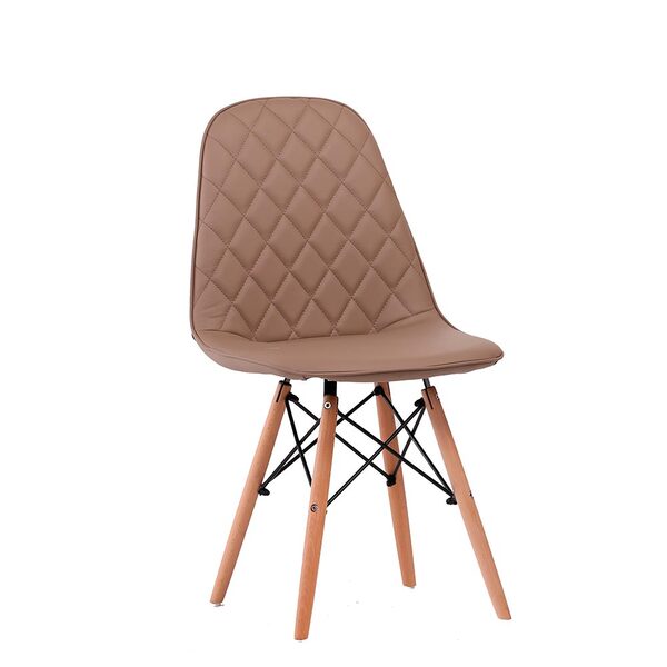 Cadeira nice fendi adaptada da famosa cadeira charles eames ela oferece um conforto a mais com seu assento estofado e revestido em pu com a sua costura em matelassê e sua base em madeira. Ela oferece toda elegância e sofisticação para todo seu ambiente é a compra certa para você e seu espaço! especificações: base em madeira e assento com revestimento em pu. altura: 83cm largura: 45cm comprimento: 53cm peso: 5kg suporta até: 120kg garantia: 90 dias contra defeitos de fabricação. limpeza e manutenção:   limpar com pano macio umedecido em solução de água e sabão neutro e secar em seguida; não utilizar produtos químicos. Não expor seu produto ao sol e umidade. não exceder o limite de peso.