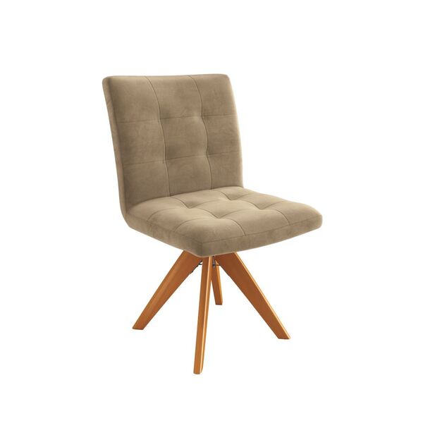 A cadeira nice é uma peça essencial para ambientes mais elegantes, ela tem um design bem contemporâneo, deixando assim seu ambiente elegante e funcional. ela é super confortável e aconchegante, agregando praticidade e conforto no seu ambiente, trazendo assim estilo e funcionalidade a peça. Tem seus pés em madeira maciça com assento giratório. ideal para usar na sua sala de estar, jantar ou até mesmo para uso em home office. características técnicas:    -57,5x51x88cm (lxcxa) -garantia: 6 meses para defeito de fabricação -matéria-prima: base em laminados compensados, com seus pés em madeira maciça com assento giratório -altura assento: 49cm -suporta 120kg