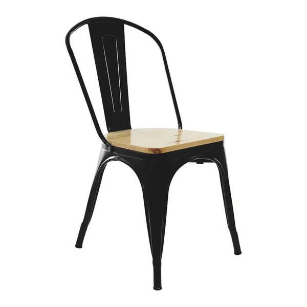A cadeira tolix assento em madeira - preta é conhecida pelo seu design rustico  que consegue ser utilizada em qualquer ambiente. Ela possui uma variedade de cores e pode ser combinada com outros modelos de cadeiras perfeitamente. Podemos intitular a cadeira tolix de retrô moderno pois ela tem em seu design traços mais clássicos que ficam totalmente modernos quando aplicadas as cores na peça são cores super vibrantes e juntando esses dois itens o resultado é essa versatilidade toda dessa incrível cadeira. disponível em várias cores em nosso site! Garanta a sua agora mesmo.   especificações estrutura: aço assento: madeira pintura: epóxi altura: 84 cm altura até o assento: 45 5cm largura: 45cm profundidade: 53cm suporta até: 120kg necessita montagem: sim garantia: 90 dias contra defeitos de fabricação.   limpeza e manutenção: aconselha-se primeiro remover o pó depois passar um pano macio umedecido com água e em seguida um pano seco ou um pano umedecido com sabão neutro e em seguida um pano seco. Não expor a luz solar nem deixar em ambientes próximos a portas de vidro ou que recebam esse tipo de iluminação a fim de evitar a perda de coloração (desbotamento).