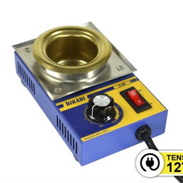Excelente equipamento para soldar por imersão, o cadinho de solda, é um recipiente em forma de pote, resistente a elevadas temperaturas, fundindo-se com diversas substâncias metálicas. Especificações: - Faixa de temperatura: 0º a 480ºC. - Cuba feita de Aço inoxidável, ide...