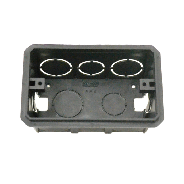 Com a dimensão de 4 x 2, esta caixa funciona como um terminal, por onde os conduítes terminam e os fios são ligados às tomadas e interruptores, com espaço suficiente em seu interior para enrolar os cabos, de forma que eles não empurrem o espelho para fora.