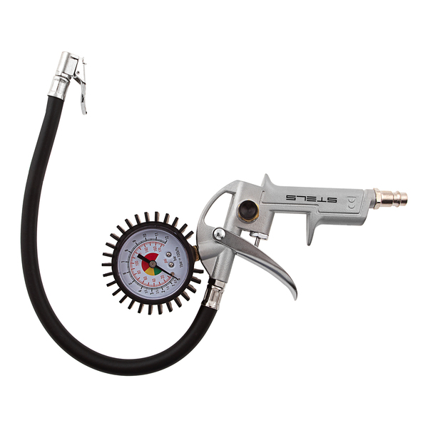 O calibrador pneumático stels 5732255 é uma ferramenta essencial projetada para atender às necessidades de enchimento de pneus com ar comprimido em ambientes profissionais como garagens, oficinas de pneus e serviços automotivos. Com uma pressão de trabalho de 8 bar e uma capacidade de fluxo de ar de 230 l/min, este calibrador combina eficiência e precisão, garantindo que os pneus sejam inflados à pressão adequada para uma condução segura e eficiente.