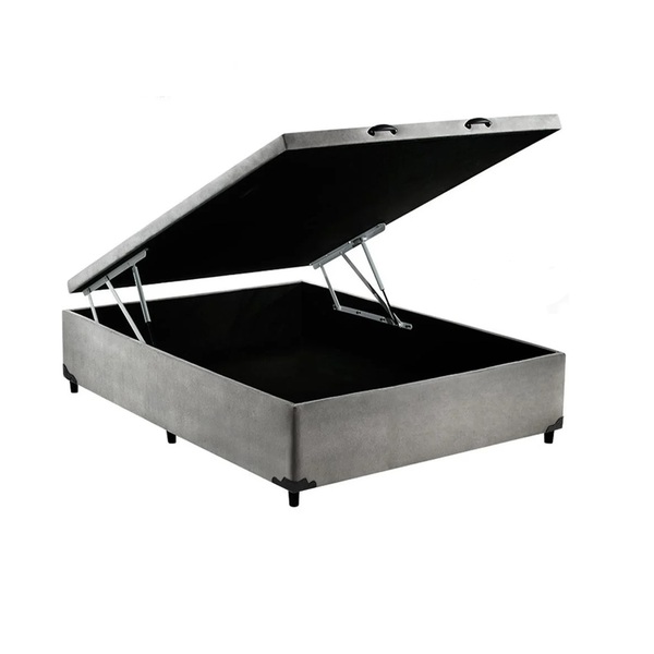 Cama box baú casal   cama box baú casal é uma junção das soluções da cama box + baú em uma única peça, sendo ideal para o aproveitamento do quarto pois oferece suporte firme ao colchão e um espaço extra para armazenar objetos e acessórios, como travesseiros, roupas de cama e poupar espaço nos armários. Permite o uso diário de um grande espaço sob o colchão com o máximo de aproveitamento de espaço interno, possuindo também sistema de fácil abertura por pistões a gas (amortecedores). A cama box baú é o termo usado para a parte de baixo, a base de apoio para o colchão. A função da cama box baú casal é de substituir a cama tradicional e servir de base para o colchão, podendo ser usada com qualquer linha ou modelo de colchão, que tenham o mesmo tamanho de largura e comprimento.possui maior durabilidade, excelente beleza, alta resistência, facilita a organização e praticidade no seu ambiente. Montagem prática e fácil. Desmontagem sem dificuldades. Abertura frontal.   - estrutura externa: suede - cor predominante: cinza - material da estrutura: madeira - altura do baú: 38 cm - altura total do baú com pés: 44 cm - largura: 138 cm - comprimento: 188 cm - profundidade interna: 27 cm - peso: 47 kg - altura dos pés: 6 cm - acabamento dos pés: acabamento em madeira na cor preto - pistão a gás: sim, na cor preta - tratamento antiácaro: sim - tratamento antialérgico: sim - suporta até (kg): 150 kg - garantia do fornecedor: 03 meses - necessita montagem: não - acompanha colchão: não - acessórios: 2 puxadores e 1 arco na parte de trás para o colchão não escorregar    conteúdo da embalagem:  cama box baú casal com pistão a gás - 38x138x188   importante:- verifique se o local de entrega está apto a receber o produto com as dimensões informadas. não nos responsabilizamos pelo transporte dos produtos por escadas, guinchos, içamentos etc.   caso perceba que a cama não passará pelas escadas, portas, elevadores e afins, recomendamos a cama baú casal bipartida. funciona da seguinte maneira: a cama com dimensões de 138x188x42cm é dividida em duas partes de (69x188x38cm). Deste modo, torna-se muito mais fácil mover a cama e passar por áreas pequenas. assim que colocada em seu lugar definitivo, são conectadas por meio de uma junção e formam assim a cama casal nas dimensões padrão (138x188x38cm).   foto meramente ilustrativa. as cores podem variar de acordo com as luzes e tela do computador, celular etc.