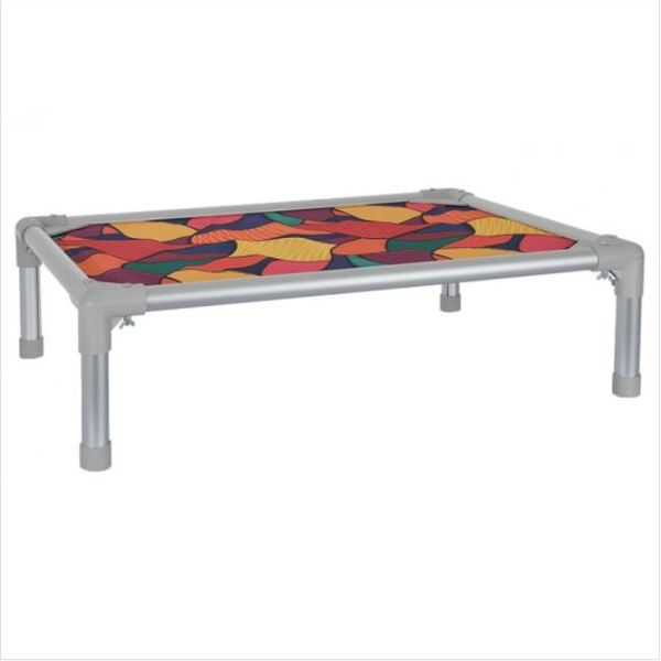 Detalhes   quem não gosta de descansar em uma cama bem confortável e aconchegante? O seu cão também merece! Conforto e segurança feito especialmente para ele descansar após um dia de muitas aventuras. Feita especialmente para cães que adoram roer e destruir, a cama buddy conta com um sistema antimordida, dificultando que o seu amigo rasgue o tecido com facilidade pois é resistente a mordidas e mastigação.   possui estrutura em alumínio anodizado e cotovelos produzidos com composto plástico duratec, que a tornam resistente aos ataques dos cães mais destruidores. Além disso, tem o tecido em nylon ultra é muito resistente e todas as bordas são protegidas pelos tubos de alumínio, dificultando o acesso aos cantos internos. Se danificado, o tecido pode ser trocado separadamente, sem a necessidade de substituir toda a cama.   a montagem é muito fácil e não requer nenhuma ferramenta. A cama não é indestrutível, ela possui mecanismos para dificultar ao máximo que seja destruída com facilidade.   elevada: por estar suspensa do chão não fica em contato com o solo, previne a formação de calos e dores nas articulações dos cães idosos, com displasia ou excesso de peso. Durante o verão a cama fica bem arejada e agradável e, no inverno, o protege do frio e umidade do piso. Em dias de baixas temperaturas, pode ser colocado um acessório acolchoado, para dar mais conforto e aquecimento ao cão.   tecido lavável: em 30 segundos a cama pode ser desmontada e o tecido retirado para lavagem (que pode ser em máquina de lavar roupas).   o tecido fica esticado quando a cama é nova, porém, logo nos primeiros dias cede um pouco para que fique confortável para o cão.   quando o tecido já estiver danificado, é possível comprar em nosso site um novo tecido avulso para substituir, sem a necessidade de trocar a cama inteira.   totalmente desmontável: a cama elevada para cachorro buddy toys pode ser totalmente desmontada, facilitando seu transporte em viagens.   canis e hotéis: por ser anti-mordida, de fácil higienização e elevada, a cama buddy é ideal para ambientes que possuem grande rotatividade de animais, como canis e daycare.   obs.: na compra da cama o tecido já está incluso. Tecido avulso disponível para compra se necessário.   medidas da cama: 109 x 78 x 22 cm (comprimento x largura x altura)   medidas da área do tecido:100 x 70 cm (comprimento x largura)   cor disponível: colorido (padrão pop)   estrutura: tubos em alumínio anodizado e cotovelos em duratec, composto plástico super reforçado.   base: tecido de nylon especial exclusivo buddy toys, resistente e lavável.   peso suportado: até 50kg   atenção: os tecidos das camas buddy não possuem mais o logo bordado (imagens somente ilustrativas)   fabricada no brasil