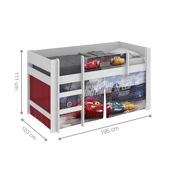 É hora da brincadeira! Com a cama temática de carro sua criança terá muita diversão nas pistas. Além de muita diversão e segurança, a cama oferece proteção lateral em formato de carro e espaço na parte inferior para brincar e guardar os brinquedos. Possui cortina em tecido, estrados reforçados, comporta colchão de 188x88. Contém a opção da escada ser montada do lado direito ou esquerdo. não acompanha colchão idade indicada de 5 á 11 anos. Suporta até 90kg sem impacto material em mdf dando mais resistência e durabilidade para o produto. Dimensões da cama: altura: 111 cm largura: 195 cm profundidade: 103 cm informações da cama: cor: branco tema da cama: carro cortina em tecido com estampa estrados reforçados pintura atóxica. Suporta até 90kg não acompanha colchão comporta colchão de 188x88 escada. Itens inclusos: 1 cama manual de montagem kit completo para montagem e manual de instruções garantia: 3 meses contra defeito de fabricação informações adicionais: - fotos meramente ilustrativas do produto no ambiente. - os objetos que ambientam as fotos não acompanham o produto; - verificar descrição e tamanho do produto antes da compra. - avaliar a mercadoria no ato do recebimento e recuse em caso de divergência ou avarias. - mantenha as informações de contato e endereço de entrega atualizados para entrarmos em contato caso necessário. - limpar com flanela ou pano macio seco, não utilizar produtos abrasivos, desengordurantes, álcool ou solvente. Não expor o produto diretamente à luz solar e à umidade. * sugerimos a contratação de um montador profissional para a montagem do produto. Não nos responsabilizamos por avarias causadas no ato da montagem. * não nos responsabilizamos pela montagem e desmontagem do produto no ato da entrega e devolução, assim como os custos gerados nestas situações. * a transportadora entregará o produto no andar térreo do endereço de entrega. * não nos responsabilizamos por subir escadas, corredores e elevadores ou transporte por guincho em apartamentos.
