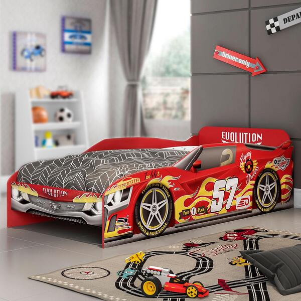 Esta cama infantil é pensada no bem-estar e aconchego de seu filho(a)! Comporta colchão de 188x88 cm, laterais que funcionam como grade de proteção, almofada inclusa no produto. Imagens temáticas de carro com impressão digital material em mdf 15mm possibilitando a segurança ...