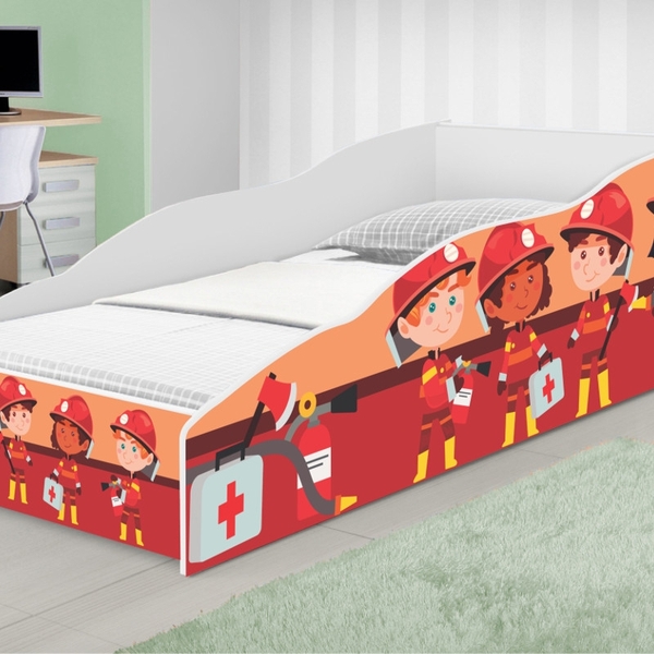 Cama Infantil Play Tropa Bombeiros A cama, com adesivagem nos painéis, conta com design moderno e direcionado para o conforto, bem-estar e segurança da criança, conferindo um ambiente alegre, colorido e divertido. Bordas arredondadas evitando riscos de acidentes, Adesivos em ...