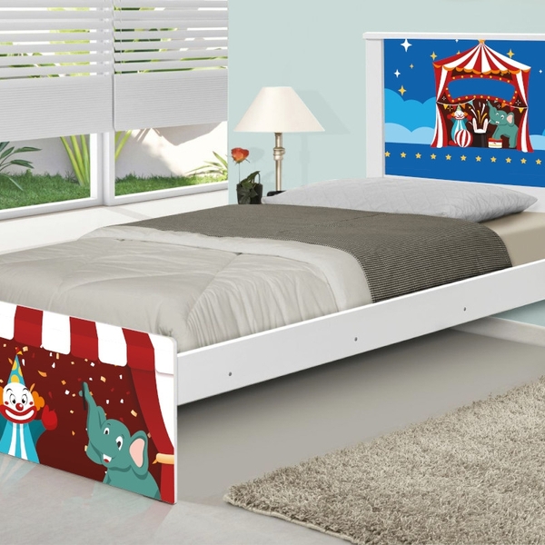 Cama solteiro juvenil barcelona adesivada circo com colchão ref. 1452 a cama barcelona adesivada circo é a cama que você procurava para completar seu dormitório com beleza e conforto. a coleção circo foi desenvolvida por nossos designers oferecendo um visual exclusivo, des...