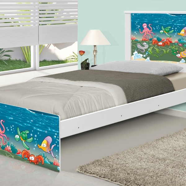 Cama solteiro juvenil barcelona adesivada fundo do mar ref. 1457 a cama barcelona adesivada fundo do mar é a cama que você procurava para completar seu dormitório com beleza e conforto. a coleção fundo do mar foi desenvolvida por nossos designers oferecendo um visual exclu...