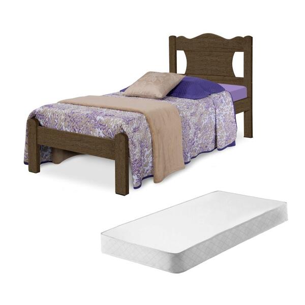 ModeloCama Solteiro Virgil Castanho com Colchão
