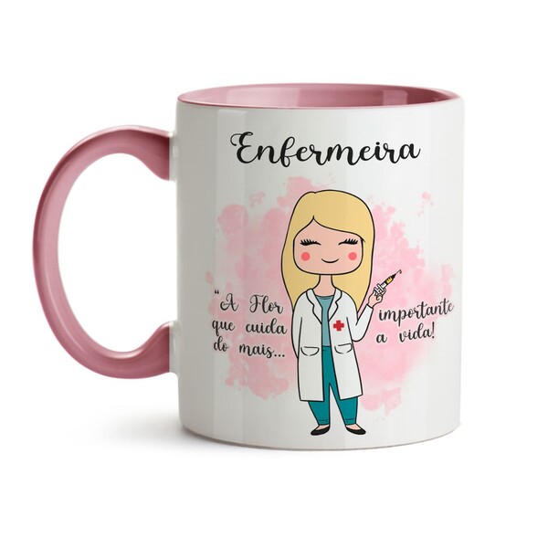 Caneca Enfermeira Rosa - Loiro Liso