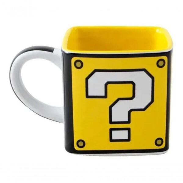 Caneca quadrada bloco: super marioolha que caneca mais irada que chegou na fings store. Diretamente do jogo super mario bros. Para a sua casa. Com o formato do bloco do jogo do bigodudo é ideal para tomar aquela sua bebida favorita enquanto joga aquele game. Ah, é feita de ce...