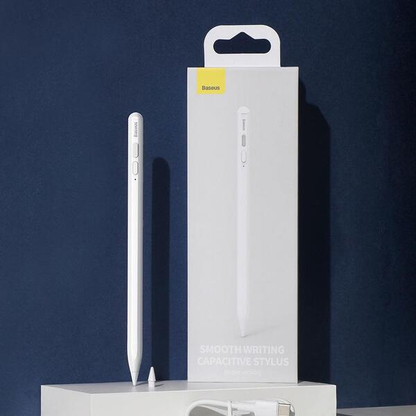 A escrita suave dá-lhe a mesma experiência que o original. uma excelente caneta para você usar no trabalho, faculdade, escola, ou até mesmo criar incríveis desenhos. tudo é intuitivo, preciso e mágico — não importa se você está desenhando, escrevendo ou anotando em documentos. Ele tem traço instantâneo, precisão absoluta, detecção de palma. A caneta premier stylus para ipad está sempre pronta para quando a inspiração bater. com a carga de uma 1 hora você consegue trabalhar 8.5 (baseus lab).  baseus compatível: apple cor: branco interface de carregamento: tipo-c compatível: ipad6, mini 5, air 3, pro, pro 3, 7, 8, air 4.
