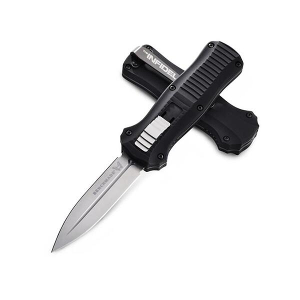Além da ação incrivelmente estável, rápida de natureza tática robusta e pura da faca, o infidel tem um fator interessante que é sua empunhadura bidirecional para maior aderência e segurança ao usuario fabricado nos eua. Tamanho total: 22,7 cm. Tamanho da lâmina: 10 cm. Material da lâmina: aço inox cpm s30v. Dureza: 58-60 hrc. Garantia de 2 anos. País de origem: eua. Fabricante: benchmade.