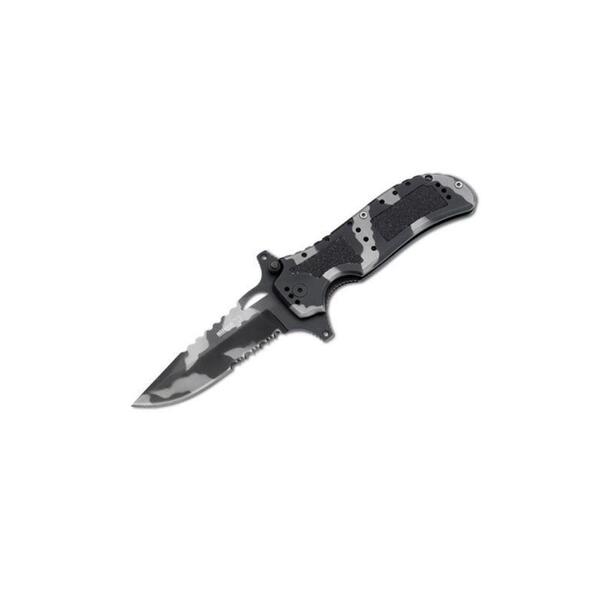 Canivete boker plus camo defender,este canivete foi projetado para lidar com qualquer tarefa. Robusto, funcional e ideal como um edc. As incrustações de na tala fornecem uma aderência extremamente segura em todas e quaisquer circunstâncias. As proteções duplas permitem a implantação super rápida da lâmina, mesmo com luvas, e fornecem proteção adicional para os dedos durante tarefas de corte de serviço pesado. A borda parcialmente serrilhada pode cortar facilmente cordas, correias, correias etc., e o clipe reversível permite o transporte em quatro direções.tamanho total: 19,6 cm.tamanho da lâmina: 8,6 cm. Material da lâmina: aço inox 440c. Dureza: 57-58 hrcpeso: 173 ggarantia: 2 anos. País de origem: china. Fabricante: bker