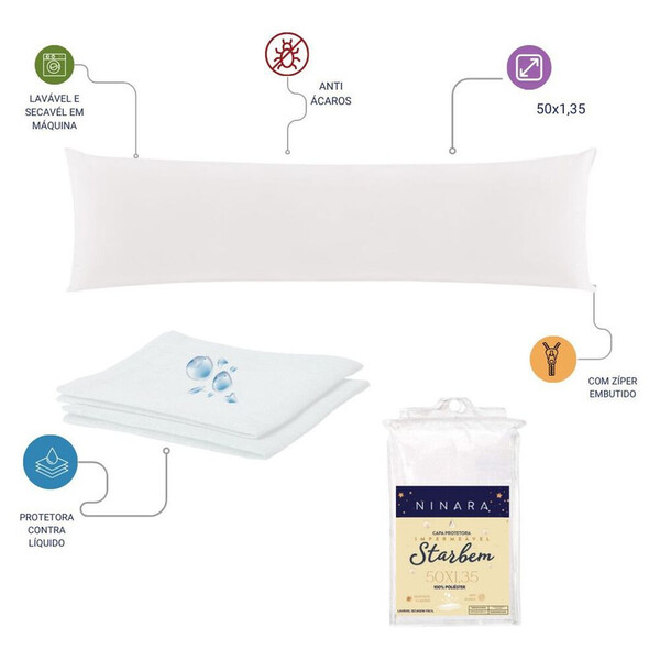 A capa protetora impermeável 50x135 é um acessório essencial para proteger travesseiros de sujeira, líquidos e ácaros, ideal para prolongar a vida útil do travesseiro e garantir higiene e conforto adicionais. Medindo 50 cm por 135 cm, esta capa se adapta perfeitamente a travesseiros de diversos tamanhos e possui um design discreto com zíper embutido que facilita sua colocação e remoção. Fabricada em 100% poliéster, é resistente e durável, oferecendo uma barreira eficaz contra manchas, rasgos e desgaste. Para usá-la, basta abrir o zíper, envolver o travesseiro e fechá-lo novamente, assegurando um ajuste perfeito e uniforme. Entre as vantagens do produto estão sua facilidade de manutenção, podendo ser lavada e seca em máquina, sua capacidade de prevenir a proliferação de ácaros, e sua impermeabilidade que protege o travesseiro de manchas e danos causados por líquidos. O zíper embutido não apenas facilita o manuseio da capa, mas também contribui para uma aparência limpa e organizada. Para manutenção, a capa deve ser lavada a uma temperatura máxima de 40ºc, sem alvejamento ou branqueamento, não deve ser secada em tambor, e deve secar verticalmente à sombra. A temperatura máxima para passar a ferro é de 110ºc, sendo que o uso de vapor pode causar danos irreversíveis, e não deve ser limpa a seco. Com essas características, a capa protetora impermeável 50x135 é uma excelente escolha para quem busca manter seu travesseiro protegido e prolongar sua vida útil, garantindo uma noite de sono tranquila e saudável.