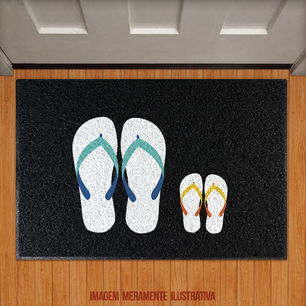 Capacho chinelo azul e chinelo infantil   capacho decorativo para usar em ambientes internos e externos. nossos capachos são produzidos 100% em pvc. podem ser lavados são antiderrapantes e não desbotam. para conservação recomenda-se lavar com água e detergente neutro. medidas: - tamanho: 60cm x 40cm - espessura: 6mm