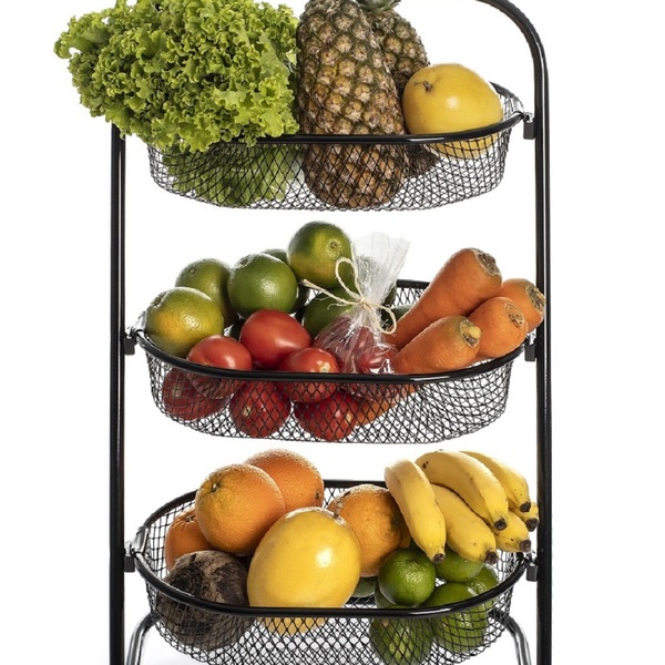 A fruteira da casa a é ideal para organizar e decorar sua casa com praticidade e estilo. Multifuncional ela pode ser usada não apenas como fruteira mas também como organizador de revistas porta-esmaltes garrafas ou outros itens adaptando-se às suas necessidades. fabricada em aço carbono 5/8'' com acabamento em pintura epóxi eletrostática a fruteira é resistente a riscos ferrugem e extremamente durável. Seus cestos em chapa de aço expandida suportam até 5 kg cada e podem ser removidos facilitando o uso transporte e limpeza. o produto conta com rodízios de polipropileno garantindo fácil locomoção entre os ambientes. Com design compacto e elegante na cor branca ele se encaixa perfeitamente em qualquer espaço mantendo tudo organizado e ao alcance. As dimensões da fruteira montada são 81 x 47 x 42 cm. ficha técnica – fruteira casa a tipo: organizador multifuncional estrutura: aço carbono 5/8'' cestos: chapa de aço expandida resistência total: 15 kg capacidade por cesto: 5 kg rodízios: polipropileno pintura: epóxi eletrostática cor: branco ou preto dimensões: altura: 81 cm comprimento: 47 cm largura: 42 cm peso: 2.3 kg garantia: 180 dias destaques do produto: organização prática e multifuncional. estrutura resistente e durável. cestos removíveis e rodízios para mobilidade. design moderno e compacto na cor branca e preta.