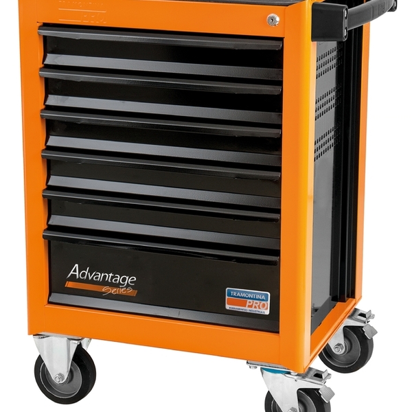 Carro para ferramentas 6 gavetasestrutura com paredes reforçadas.seis gavetas com corrediças telescópicas.cinco gavetas com 75 mm de altura e uma com 155 mm.trancas para gavetas.rodas dianteiras fixas e traseiras giratórias, de borracha com 125 mm de diâmetro.rodas traseiras providas de freio individual.cap. De carga máxima por gaveta com altura de 75 mm: 20 kg / com altura de 155 mm: 30 kg.cap. Estática: 300 kg , cap. Dinâmica: 200-250 kg.espessuras das chapas: corpo e gavetas: 1,2 mm.as maletas, carros e bancadas são testados em ensaios de carga, para garantir sua resistência durante a utilização na oficina ou indústria.a pintura eletrostática forma uma película protetiva que garante um acabamento excelente e resistência à corrosão.as gavetas que estão na linha de carros e bancadas, possuem corrediça tipo telescópica. As corrediças telescópicas garantem deslizamento suave e maior abertura para as gavetas, quando comparadas com corrediças tradicionais.armazenamento e transporte de ferramentas manuais, peças e acessórios.puxador ergonômico e lâmina de borracha para tampo superior.as ferramentas são produzidas e testadas conforme normas específicas.use óculos, luvas e outros equipamentos de proteção individual (epis) de acordo com a tarefa a ser executada. Lubrifique as guias telescópicas das gavetas regularmente, para manter seu bom funcionamento.mantenha as gavetas e portas dos carrinhos e caixas trancadas durante sua movimentação ou transporte.não coloque peças muito altas sobre carrinhos, pois elas caem facilmente durante sua movimentação. Mantenha o chão do local de trabalho limpo, evitando que as rodas dos carrinhos batam ou passem sobre obstáculo, causando a queda de algo que está sobre o carrinho, ou do próprio. Não sobrecarregue as gavetas dos carrinhos ou caixas com peso excessivo. Armazene em local limpo e seco.a linha de carros organizadores para ferramentas conta com modelos fechados, abertos e porta-cones. Os modelos possuem estrutura com paredes reforçadas, puxador ergonômico, rodas de borracha e sistema especial de travamento de gavetas, o que proporciona maior segurança, parado ou em movimento. Porque não basta ter a ferramenta certa, é preciso ter ela sempre à mão.ean13: 7891114091915dun14: 17891114091912ncm: 9403.20.00peso líquido: 59,0000 kg.peso bruto: 66,9000 kg.metragem: 0,356400 m³.dimensões embalagem (compr. X larg. X alt.): 660x 540x1.000 mm.dimensões produto (compr. X larg. X alt.): 650x 460x 851 mm.cor 1: ef8134 hexadimensão extra a: 851,0 mm.dimensão extra b: 460,0 mm.dimensão extra c: 650,0 mm.dimensão extra d: 485,0 mm.código referencia tramontina: 44950010empresa tramontina: garibaldiacessórios: opcional 44954993 suporte para catálogos e documentos para carros organizadoresopcional 44954991 suporte para lubrificantes para carros organizadoresopcional 44954992 suporte para rolo de papel para carros organizadoreslinha comercial: advantage seriesgarantia:garantia total contra vícios ou defeitos de fabricação.