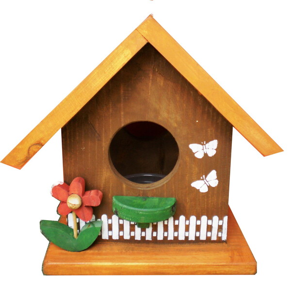 Casinha de pássaro comedouro para varanda e jardim.feita com madeira maciça de reflorestamento é decorada artesanalmente.cor: laranja.resiste ao tempo, acabamento encerado!acompanham gancho e corrente. Altura: 0.25 cm largura: 0.25 cm comprimento: 0.20 cm peso: 3000 g