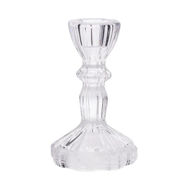 Castiçal de vidro karat transparente 11x7cmos castiçais existem há séculos e a princípio tinham a função de iluminar as mesas de jantares, quartos e toda a atividade noturna, já que na época não existia energia elétrica.hoje em dia são usados para criar um ambiente agradável e intimista, tornando-o mais aconchegante e a iluminação mais suave.além disso, os castiçais possuem grande poder decorativo num ambiente, o que permite o uso deles até mesmo sem as velas para iluminação.de diferentes tamanhos, designs e materiais são super atemporais, versáteis e combinam com qualquer estilo de decor e propostas de uso.especificações:medidas: 11x7cmmaterial: vidro