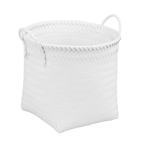 Cesto Organizador de Plástico Branco Redondo com Alças 35x32x35cm Oikos