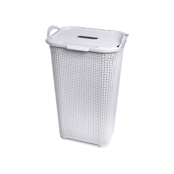 Cesto Rattan com Tampa Basculante Branco 50 L