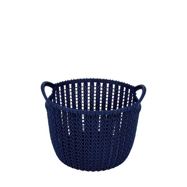 Cesto trançado circular m azul noite o cesto trançado circular pequeno é ideal para quem busca organizar um ambiente e otimizar ao máximo seu espaço. Produzido em polipropileno resistente, é durável e fácil de limpar, contando com alças para facilitar ao carregá-lo e peso má...