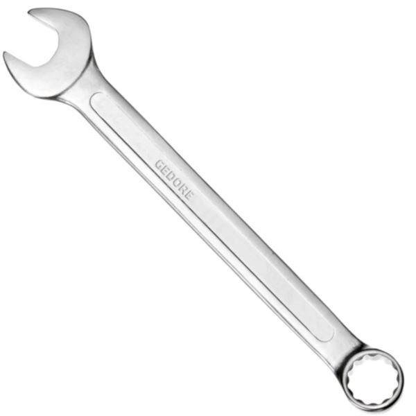 Chave combinada é fabricada em aço cromo-vanádio gedore com acabamento niquelado e cromado, oferecendo resistência e durabilidade. Indicada para aperto e desaperto de porcas e parafusos. Conta com um lado fixa e outro estrela de medidas iguais.\n:: encartelada individualmente para
