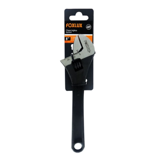 Chave inglesa ajustável 8 polegadas foxlux.a chave inglesa foxlux é feita em cromo vanádio e possui escala gravada a laser para evitar que a numeração se desgaste.fosfatizada.cabeça polida.escala gravada a laser