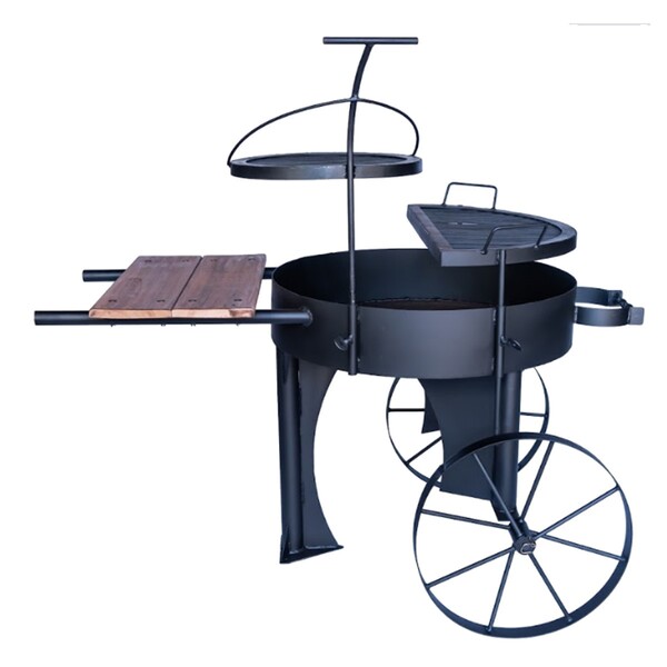 Descrição: churrasqueira com rodas perfeita para grandes churrascos com amigos e família. Churrasqueira fogo de chão onde se pode fazer um churrasco fogo de chão sem propriamente usar o chão. Excelente para assar grandes quantidades de carne. medidas: diâmetro :85cm ...