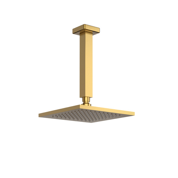 Acabamento DOURADO ESCOVADO Dimensões: 199x199x249mm Pressão mínima: 15 m.c.a - Vazão: 12L/min Pressão ideal: 30 m.c.a - Vazão: 18L/min Instalação com monocomando ou registros separados (quente e frio) Necessário aquecimento central (gás / solar) REVESTIMENTO PVD "Physical...